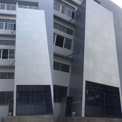 为保证园区的整体形象,特为用户设计采用铝塑板做外包装的升降平台,实现功能同时又提高整体设备当次,与园区规划如出一则。